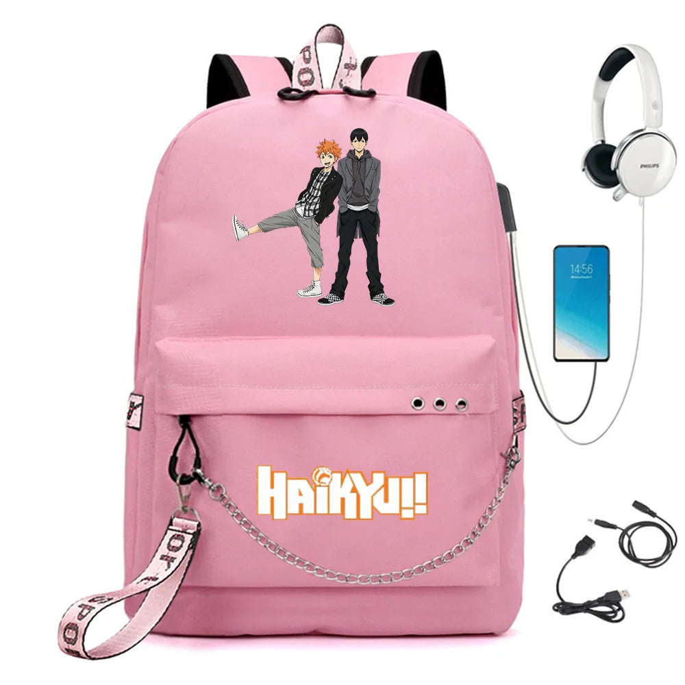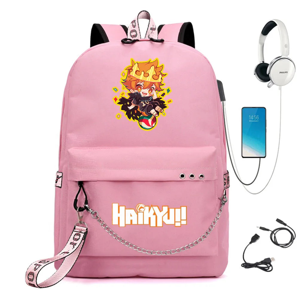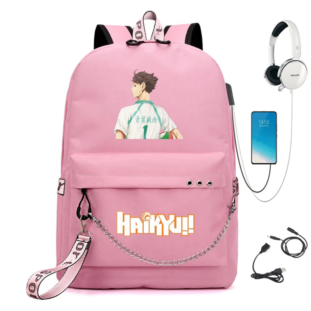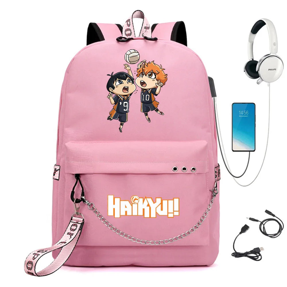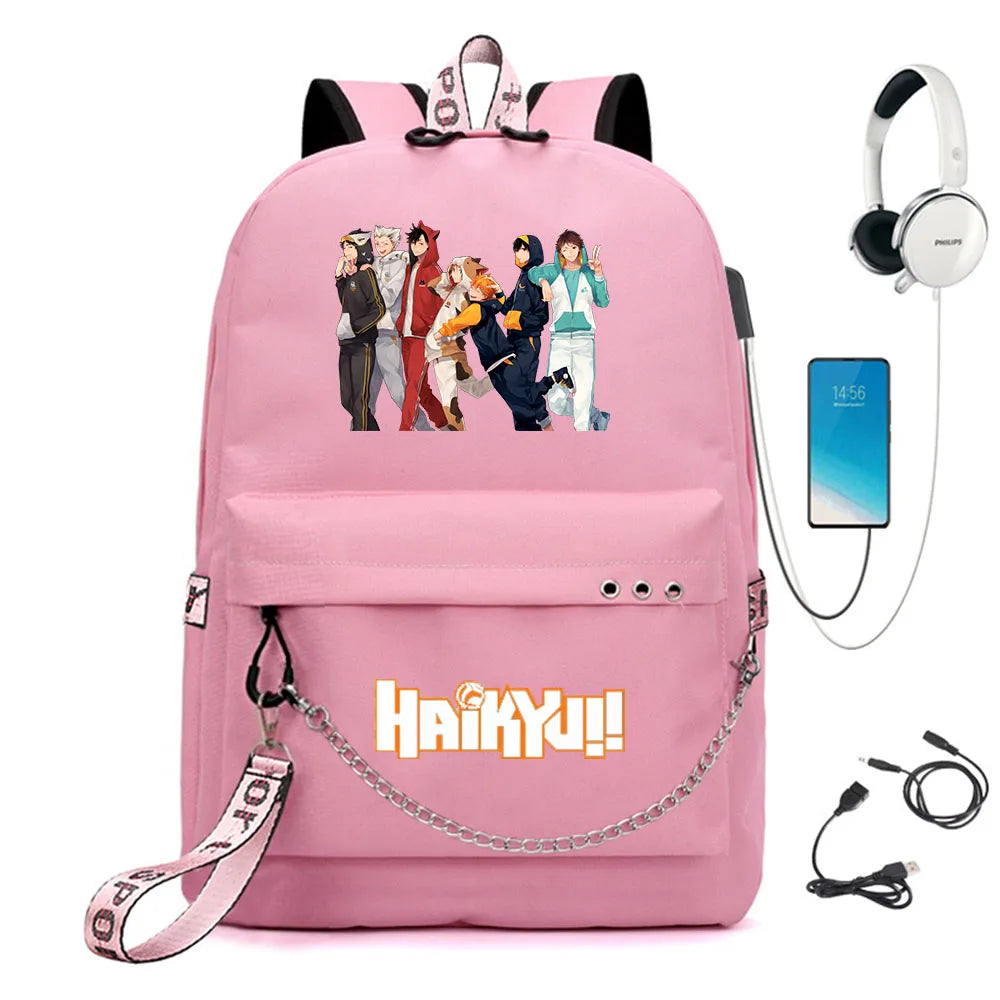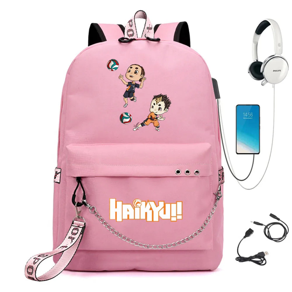 Anime Haikyuu Nylon Backpack USB Charge Schoolbag Packsack