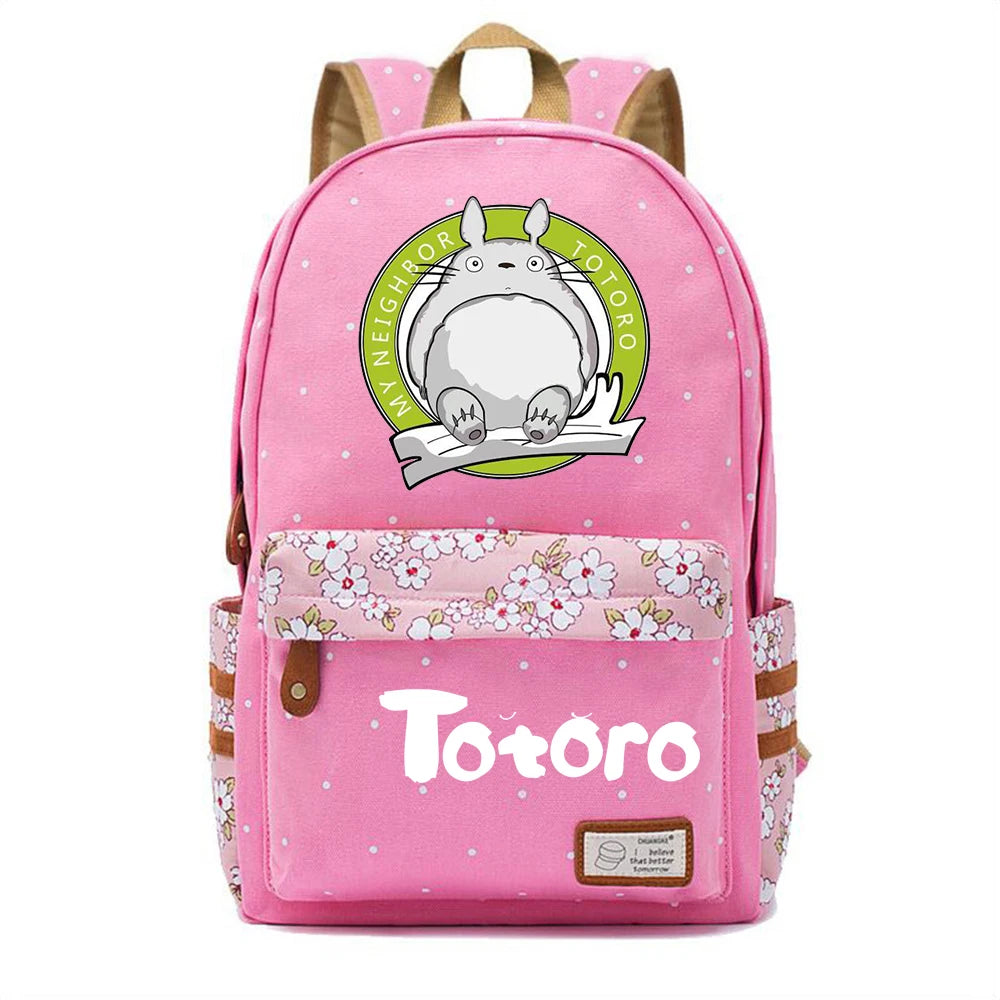 Anime Totoro Casual Pink Backpack Unisex Student Cartoon Schoolbag