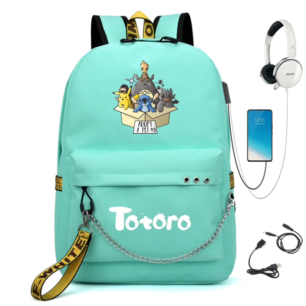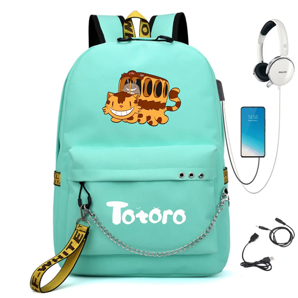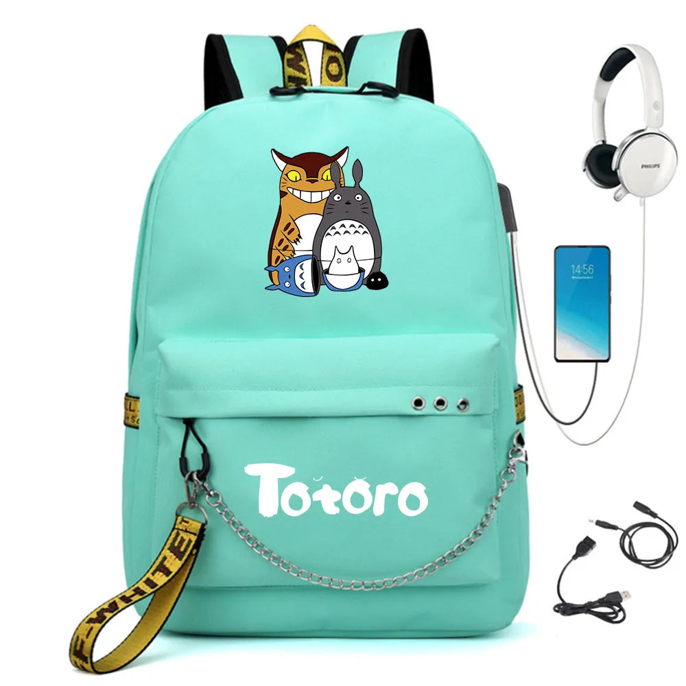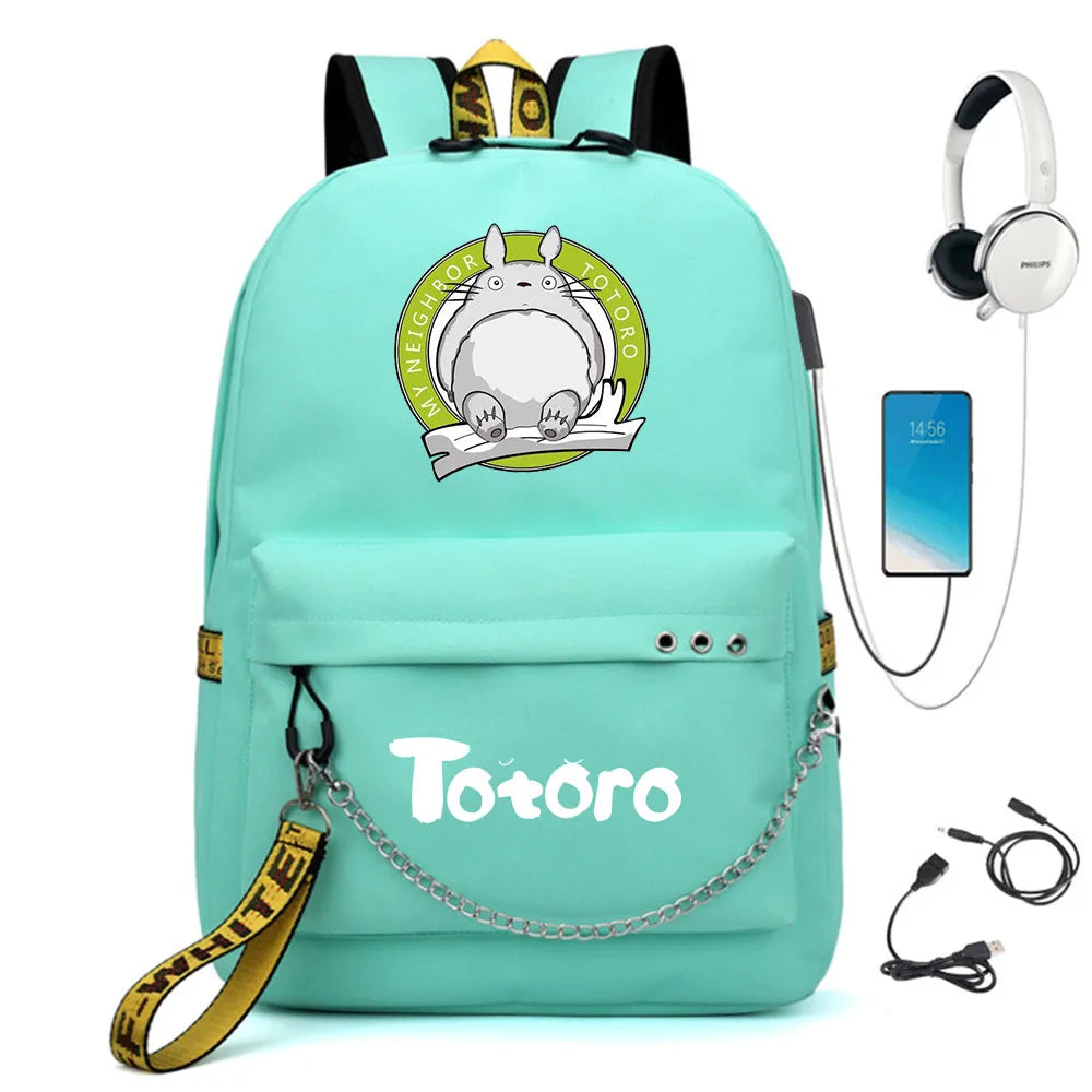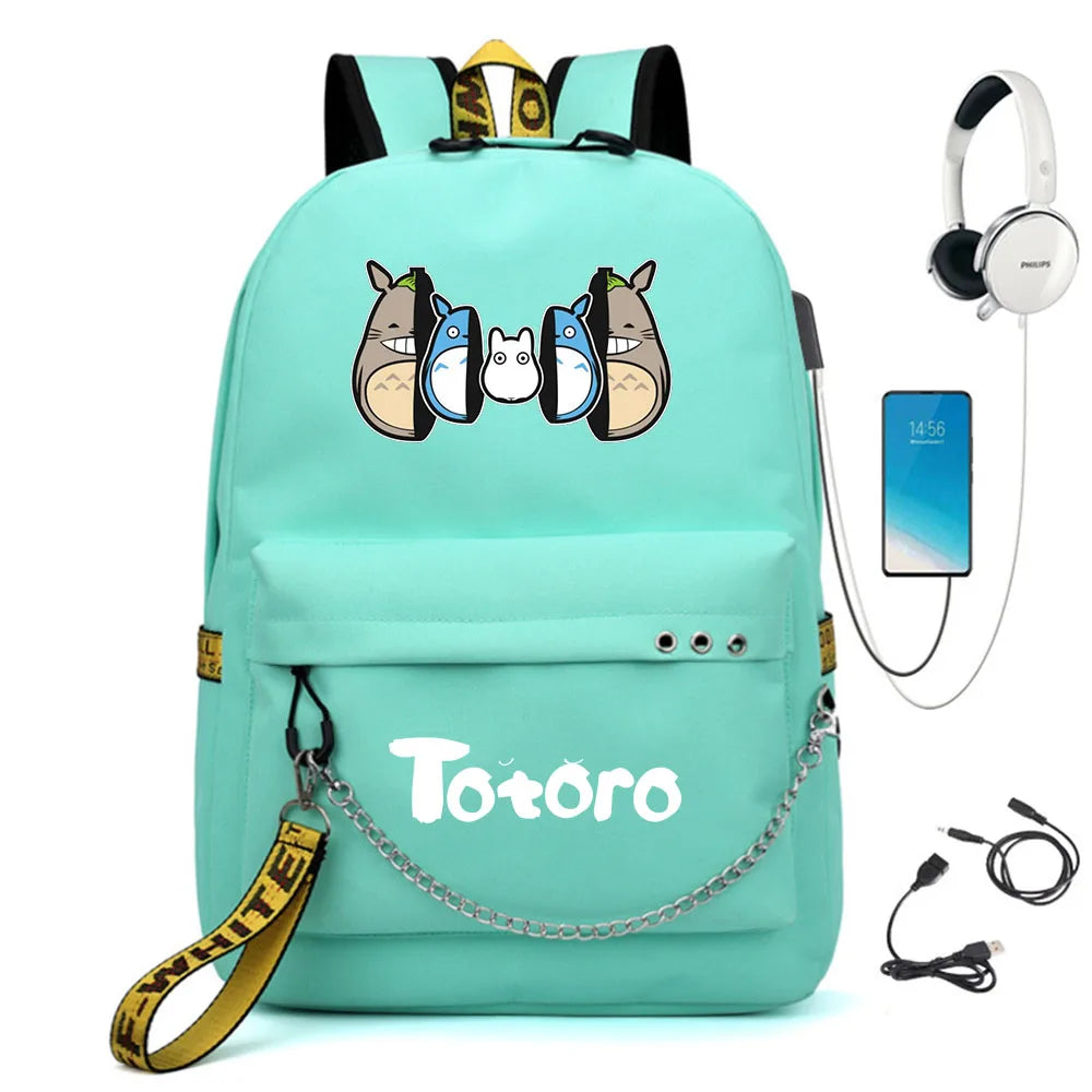 This Totoro backpack is perfect for students. It features a USB charging port and ample storage space for books and a laptop.