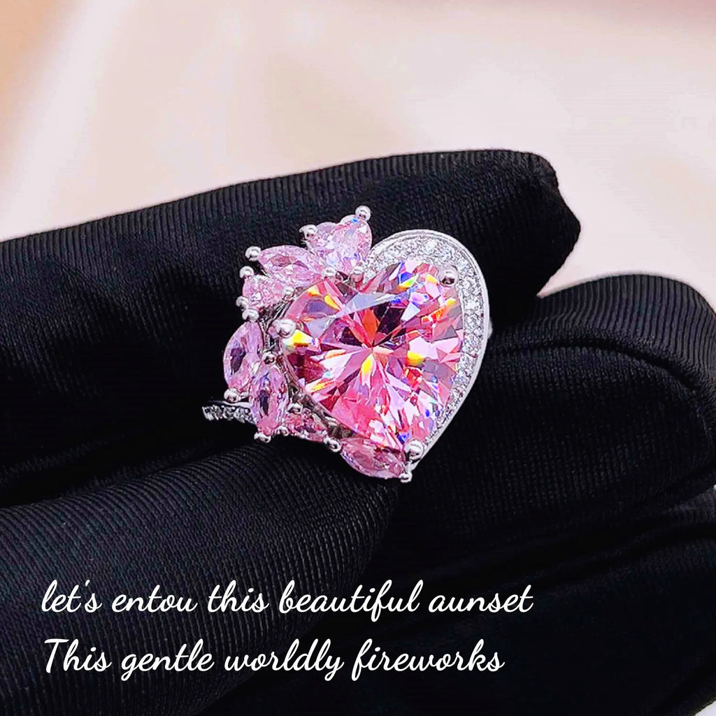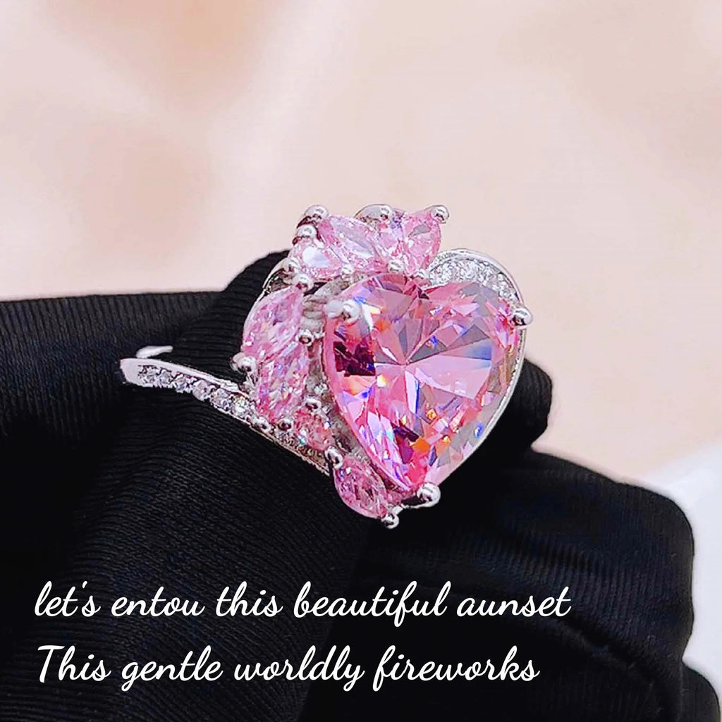 Elegantly crafted pink crystal morganite zirconia ring and pendant necklace set in silver, perfect for engagement or special occasions.