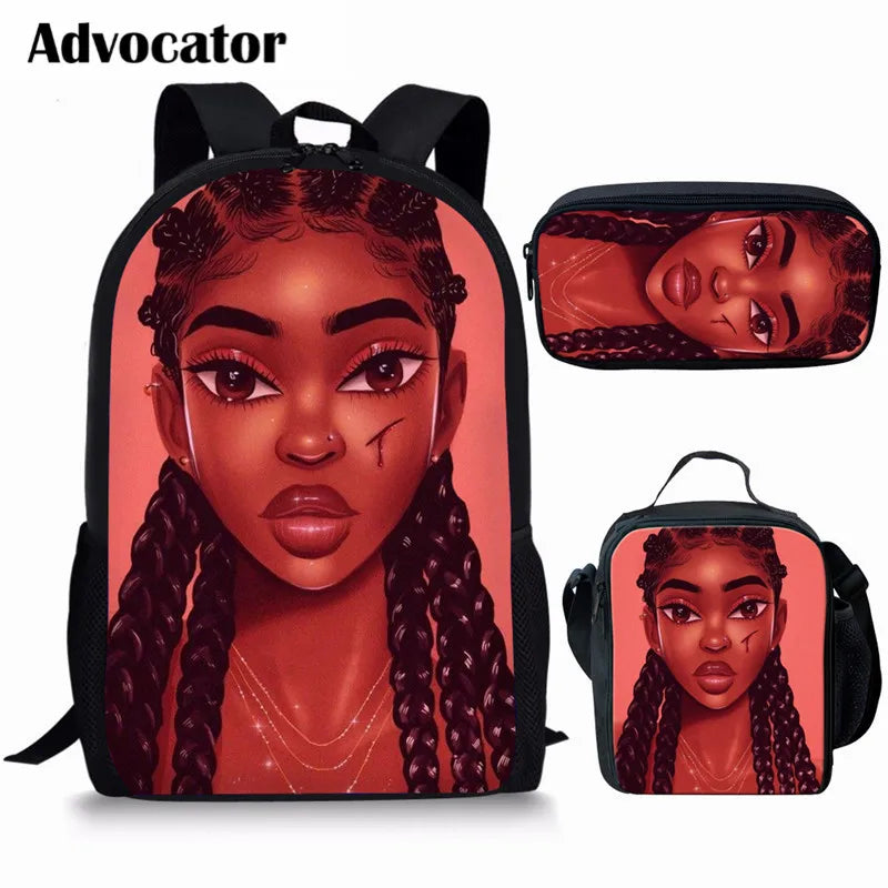 Description:This 3-piece backpack set includes a backpack, schoolbag, and satchel featuring beautiful African girls artwork. Perfect for school or everyday use.Features: 3pc backpack set with African girls artwork Ideal for school, travel, or everyday use Adjustable straps for comfortable wear Durable and spacious design for books and supplies Unique and...