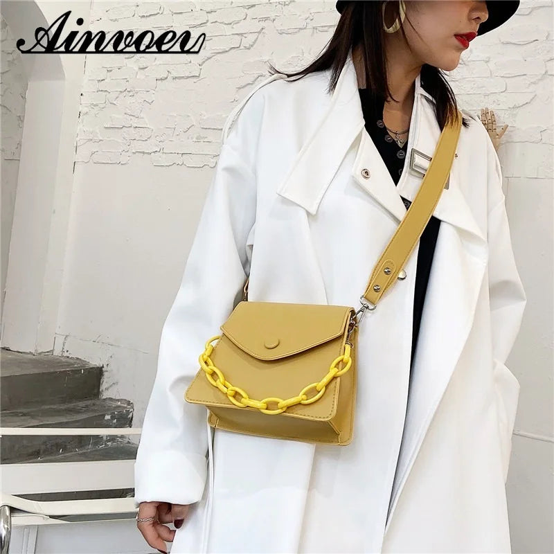 This fashionable handbag is perfect for autumn, made of high-quality PU leather with a solid chain design. It can be carried as a shoulder or messenger bag, adding style to any outfit.
