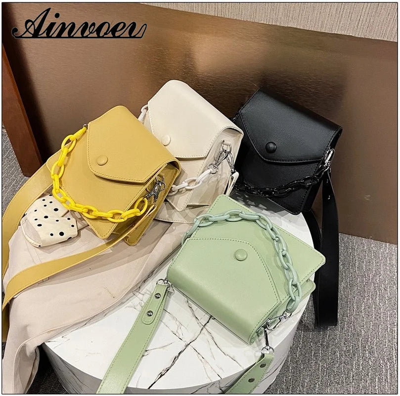 Autumn Female PU Leather Small Bag Solid Chain Portable Shoulder Messenger Bag