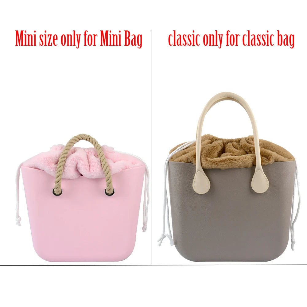 Keep your O Bag stylish and organized with this plush fur top drawstring insert. Perfect for autumn and winter seasons.