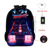 Back to Future Print Backpack Bag 16 Inch USB Students College Teens School Bags