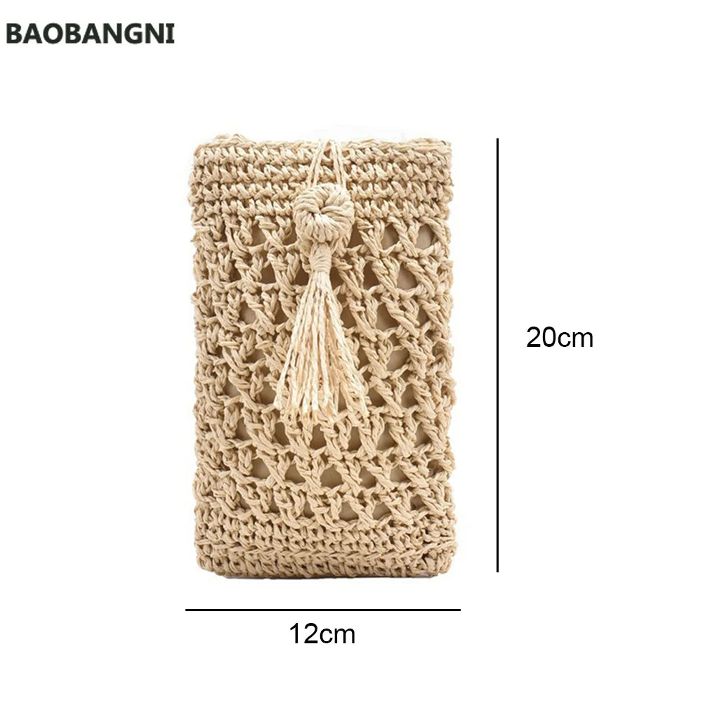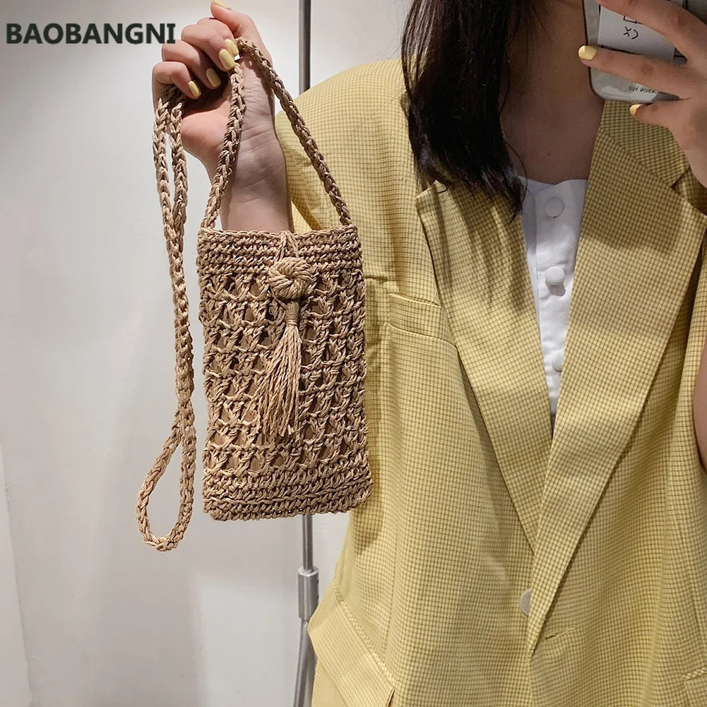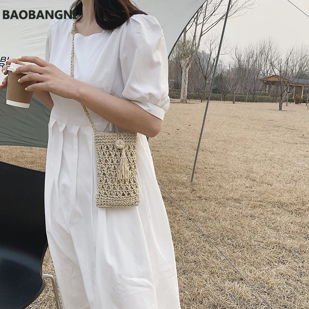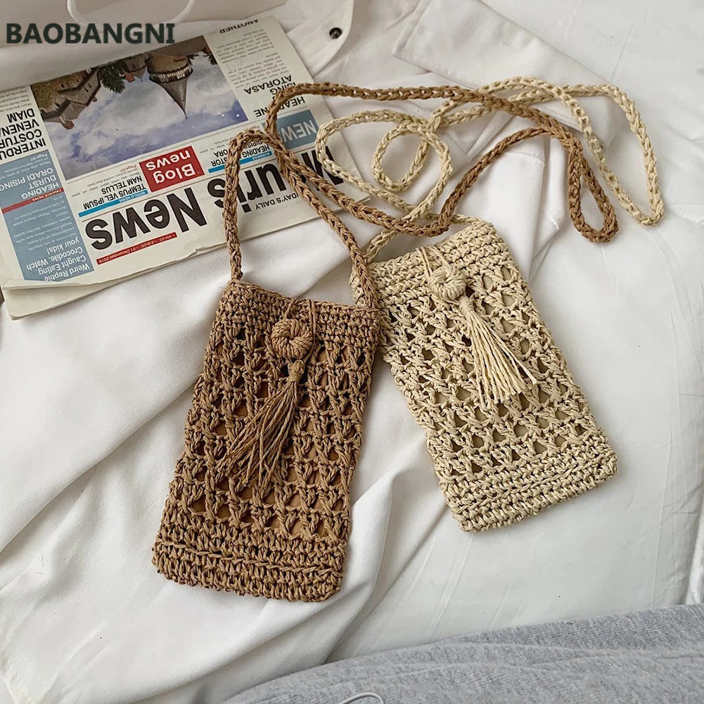 Beach Mobile Phone Bag Summer Mini Crossbody Straw Tassel Bag