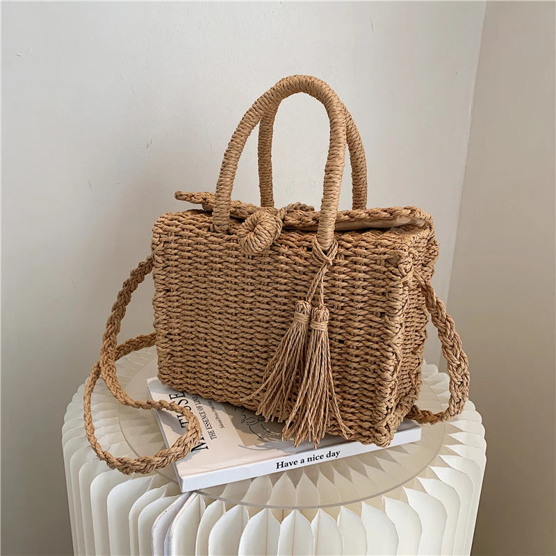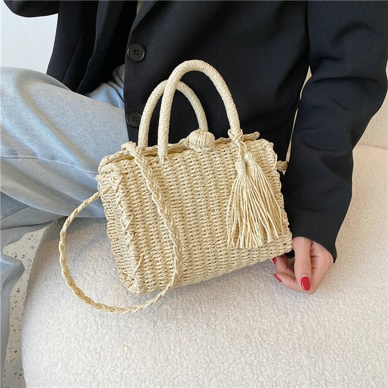 Beach Straw Rattan Crossbody Shoulder Bag Top Handle Handbag