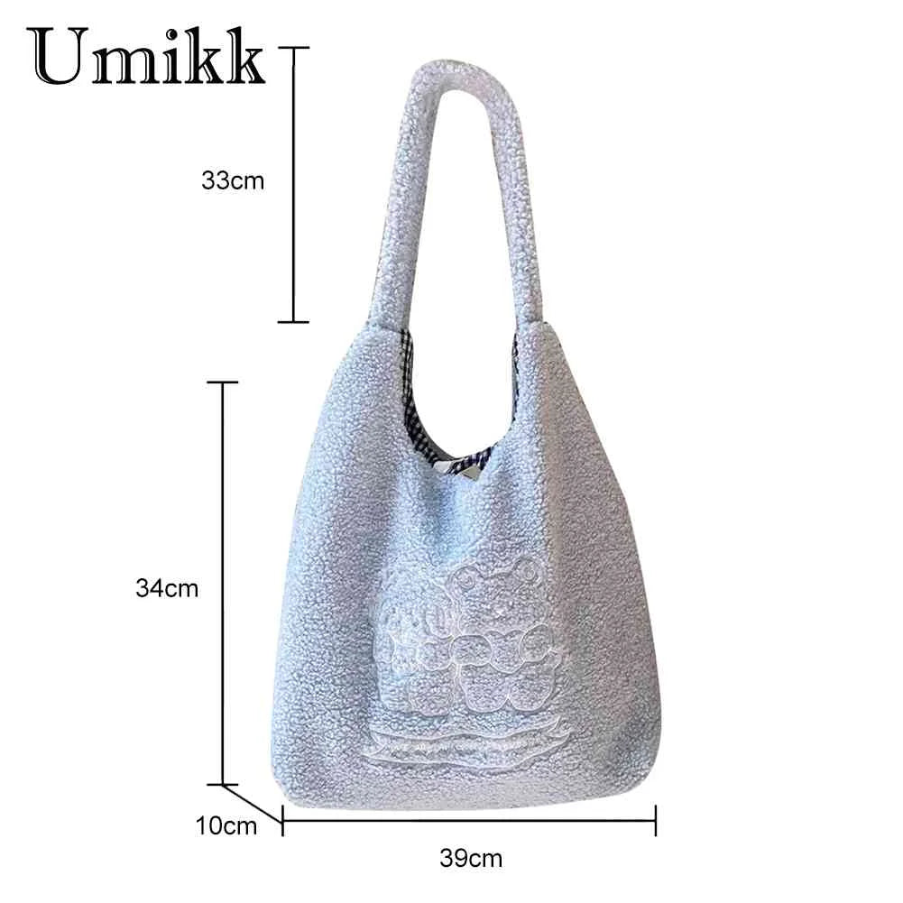Bear Plush Underarm Bag Large Capacity Embroidered Lovely Animal Tote Bag