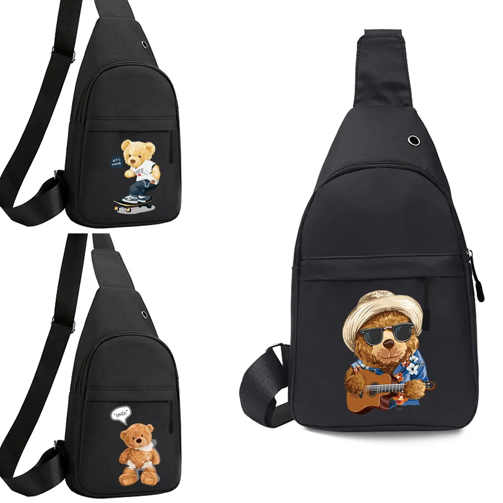 This casual crossbody chest bag features a bear print design. It's perfect for travel, sports, or daily use.