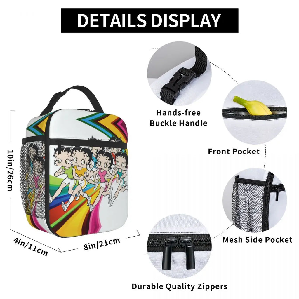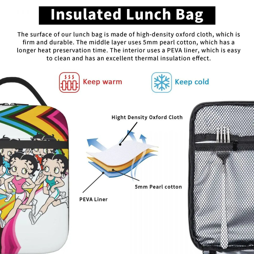 Stay stylish and keep your food fresh with this Betty Boops Animation Insulated Lunch Tote Bag. Perfect for outdoor camping, travel, or everyday use.
