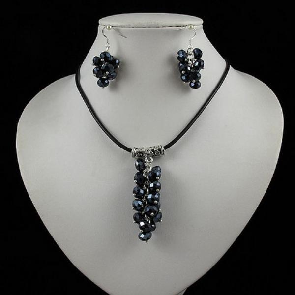Description:Elegant and unique, this set features a dark crystal grape pendant on a black leather necklace with 925 silver dangle earrings. A perfect gift for any woman.Features: Dark crystal grape pendant on black leather necklace 925 silver dangle earrings included Elegant and stylish design Ideal for gifting to women Unique...
