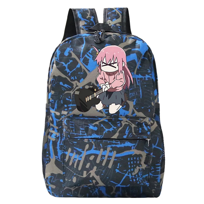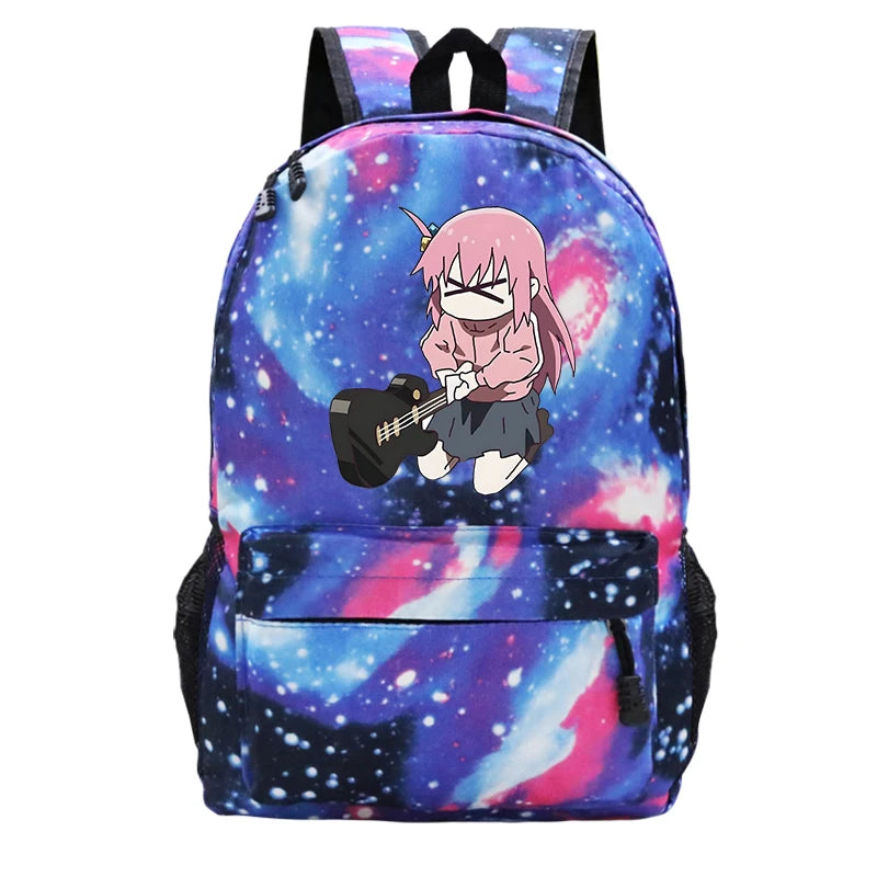 Get ready for school with this cool and unique Bocchi The Rock backpack. The bag features a vibrant guitar design that is perfect for teens. It's a great addition to anyone's collection.