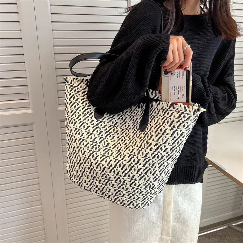 Boho Straw Shoulder Bag Rattan Beach Tote Large Capacity Handbag