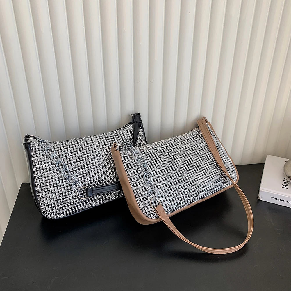 Stay stylish with this small woven handbag featuring a bright diamond design. Perfect for girls and women, this bag is versatile and trendy.