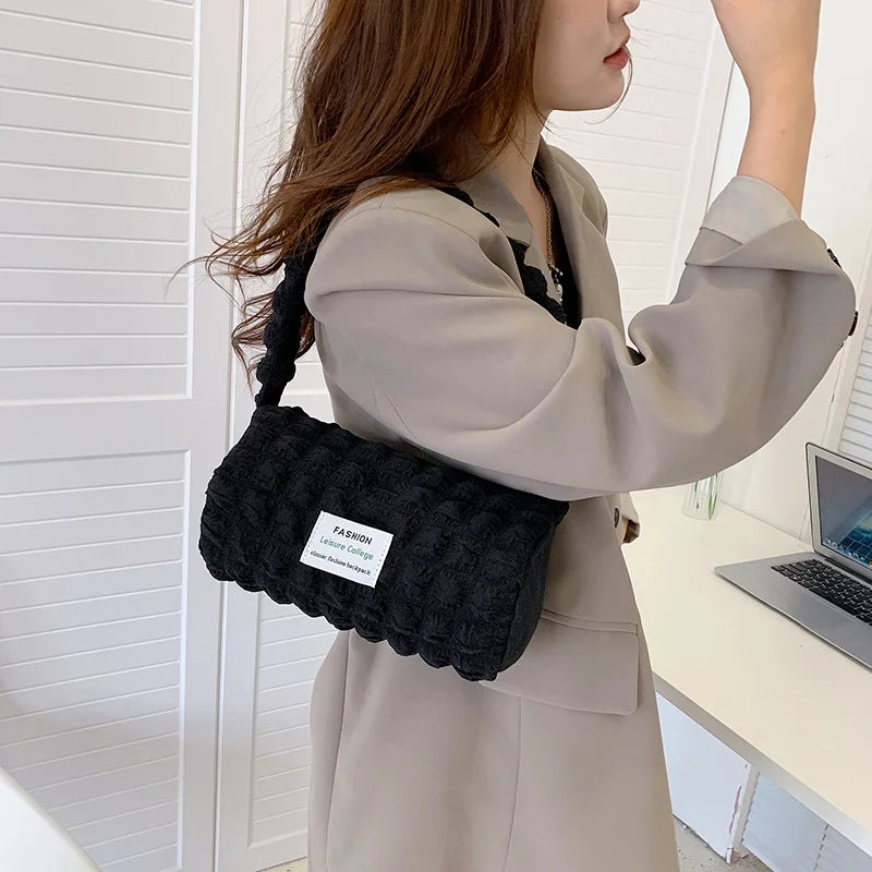 Bubble Shoulder Bag Cylinder Shape Underarm Bag Handbag Tote Bag