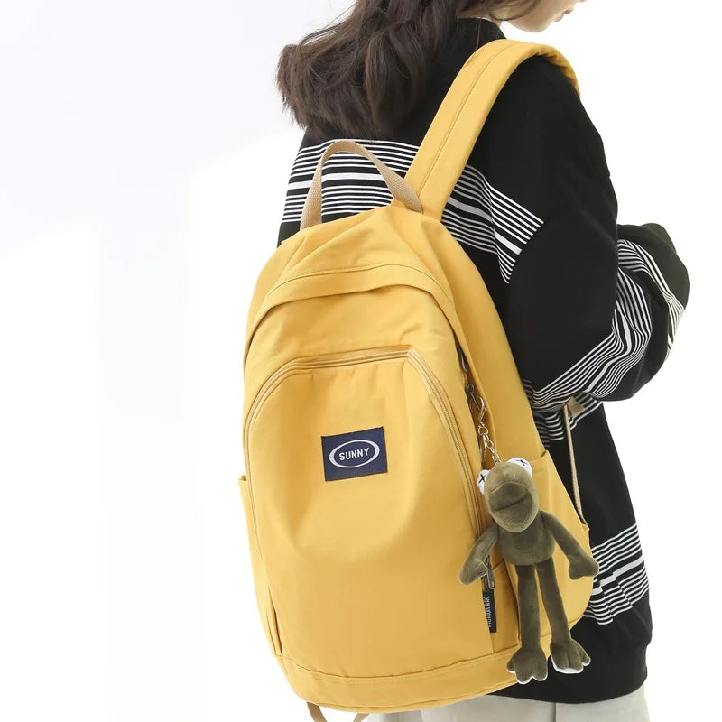 Stay stylish and secure with this canvas anti-theft backpack. Perfect for young ladies, it features a large capacity for all your essentials, including a computer. Ideal for school or everyday use.