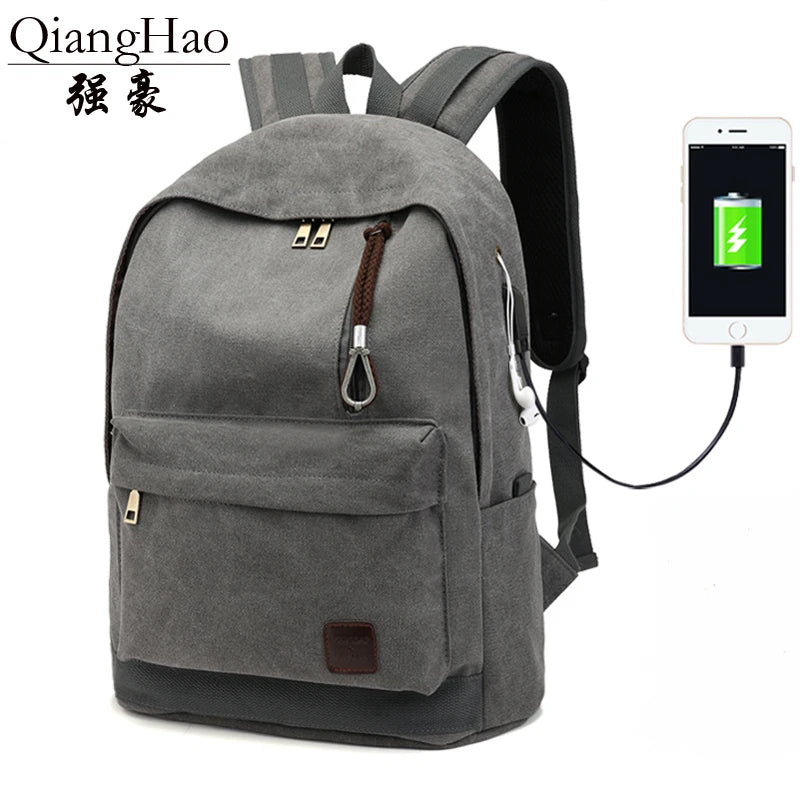 Canvas Backpack Anti-theft School Backpack USB Charging Bags Teen Travel
