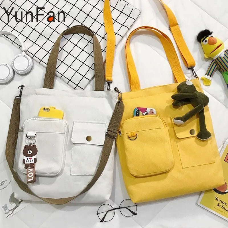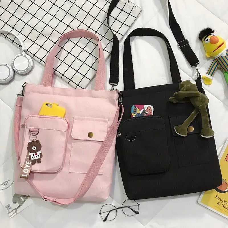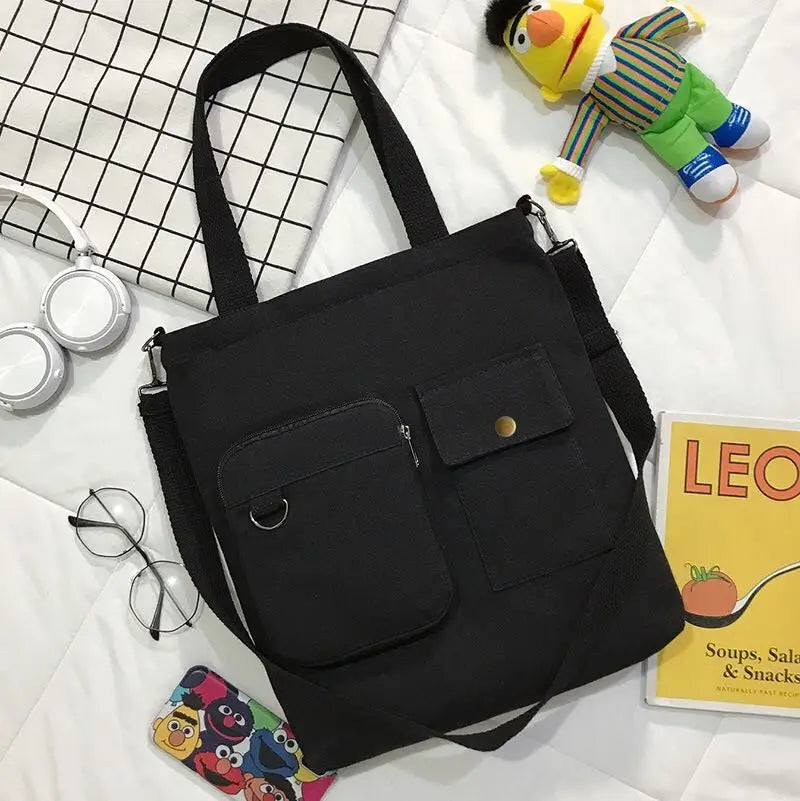 Canvas Double Front Pockets Ladies Shoulder Bag
