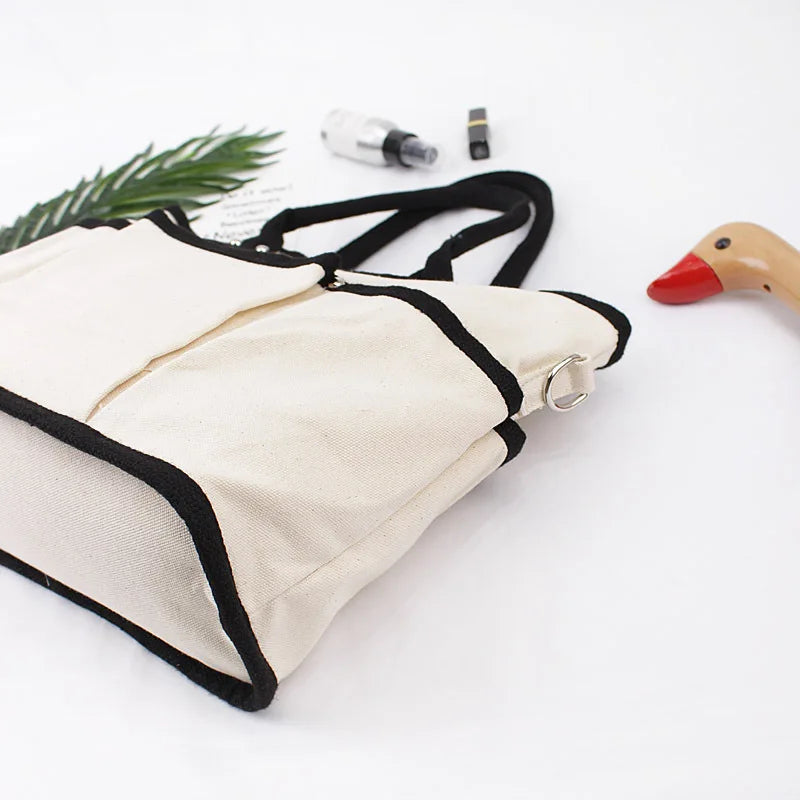 This canvas handbag is perfect for casual outings, featuring a fashionable design with multiple pockets for organized storage. It offers a large capacity to carry all your essentials.