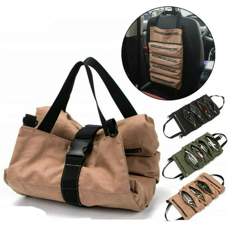 Canvas Roll Up Tools Pouch Wrench Organizer Car Back Seat Storage Bags