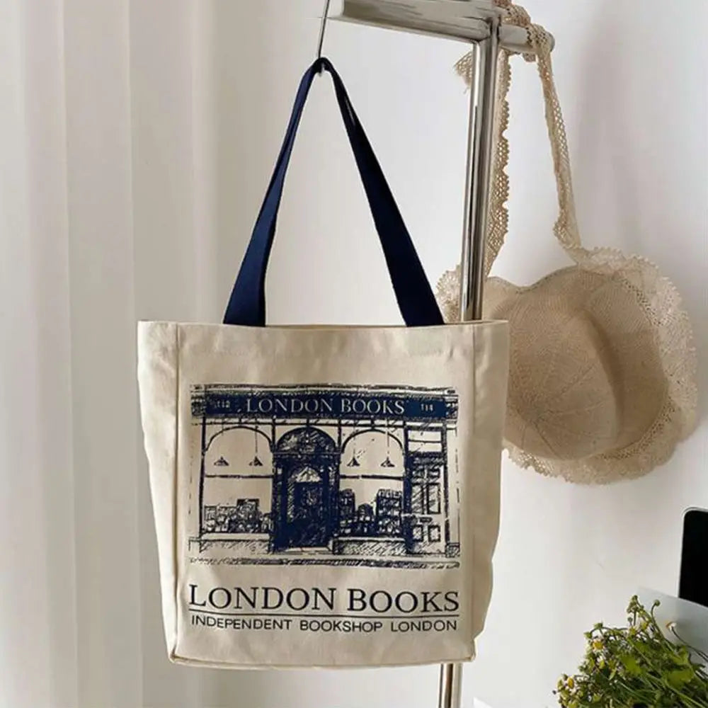 Canvas Shoulder Bag Casual Print Large Capacity Shopping Tote