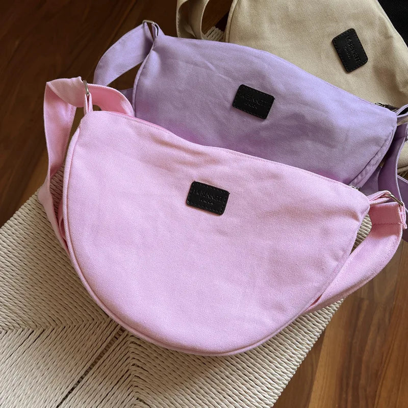 This messenger bag is made of high-quality cotton canvas material, perfect for everyday use. It features a zipper closure and a comfortable shoulder strap for easy carrying.