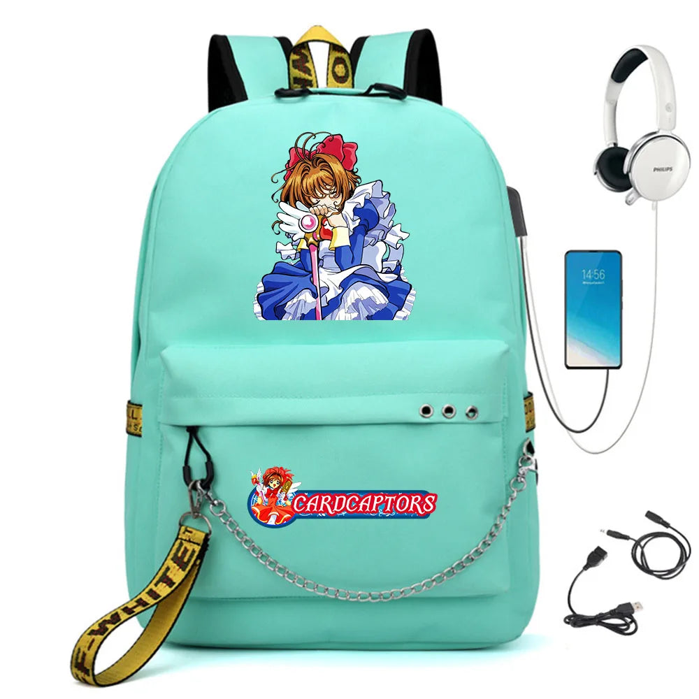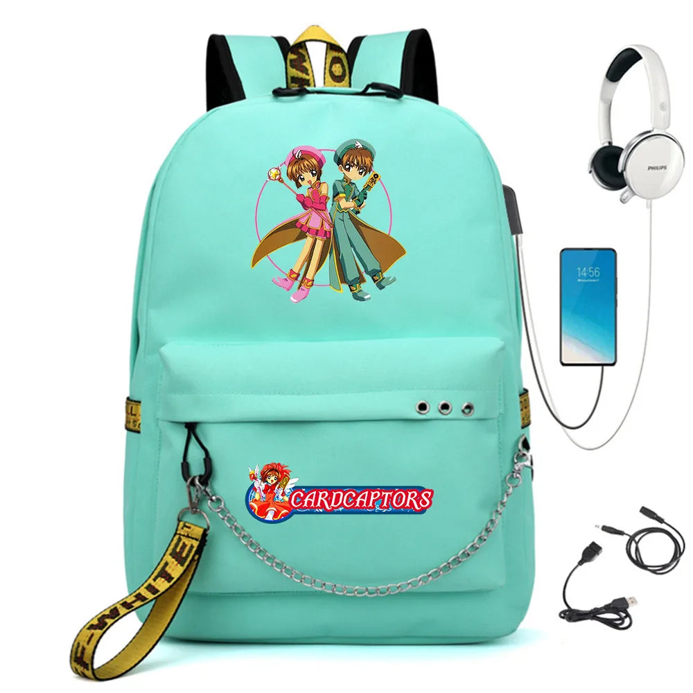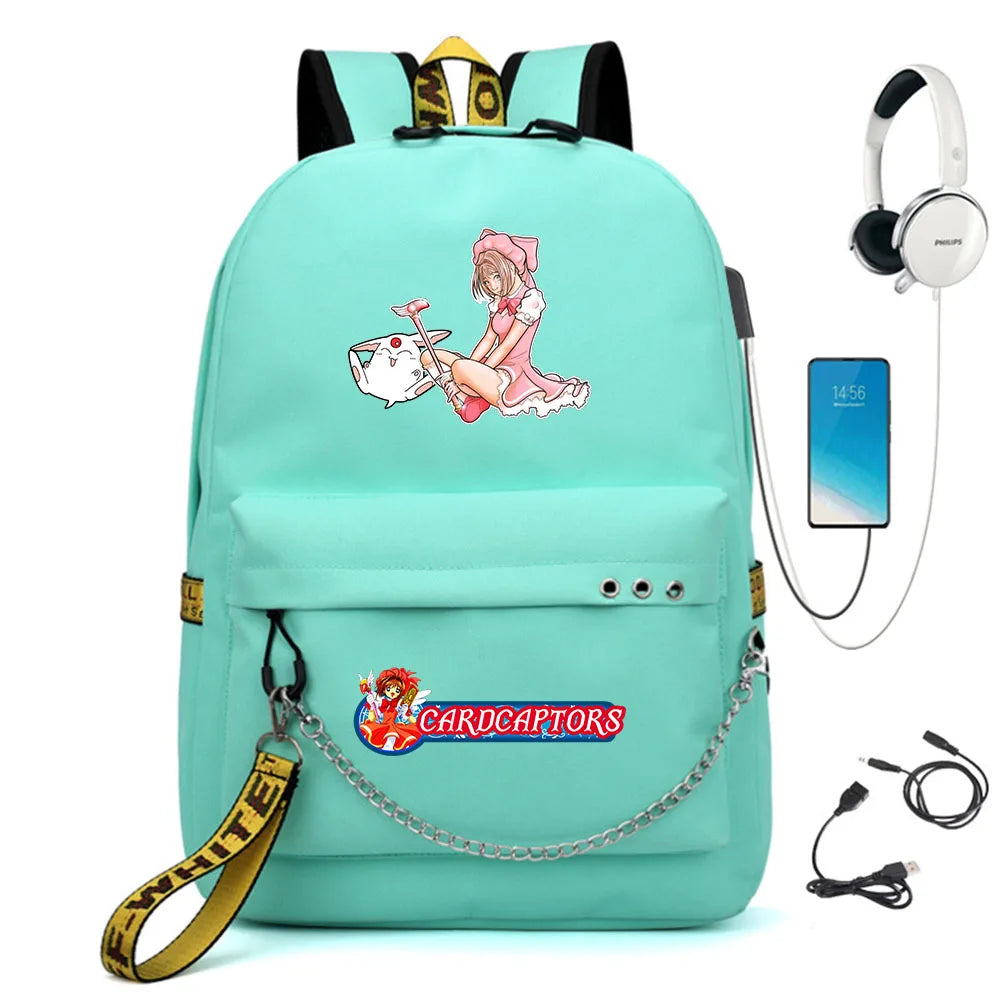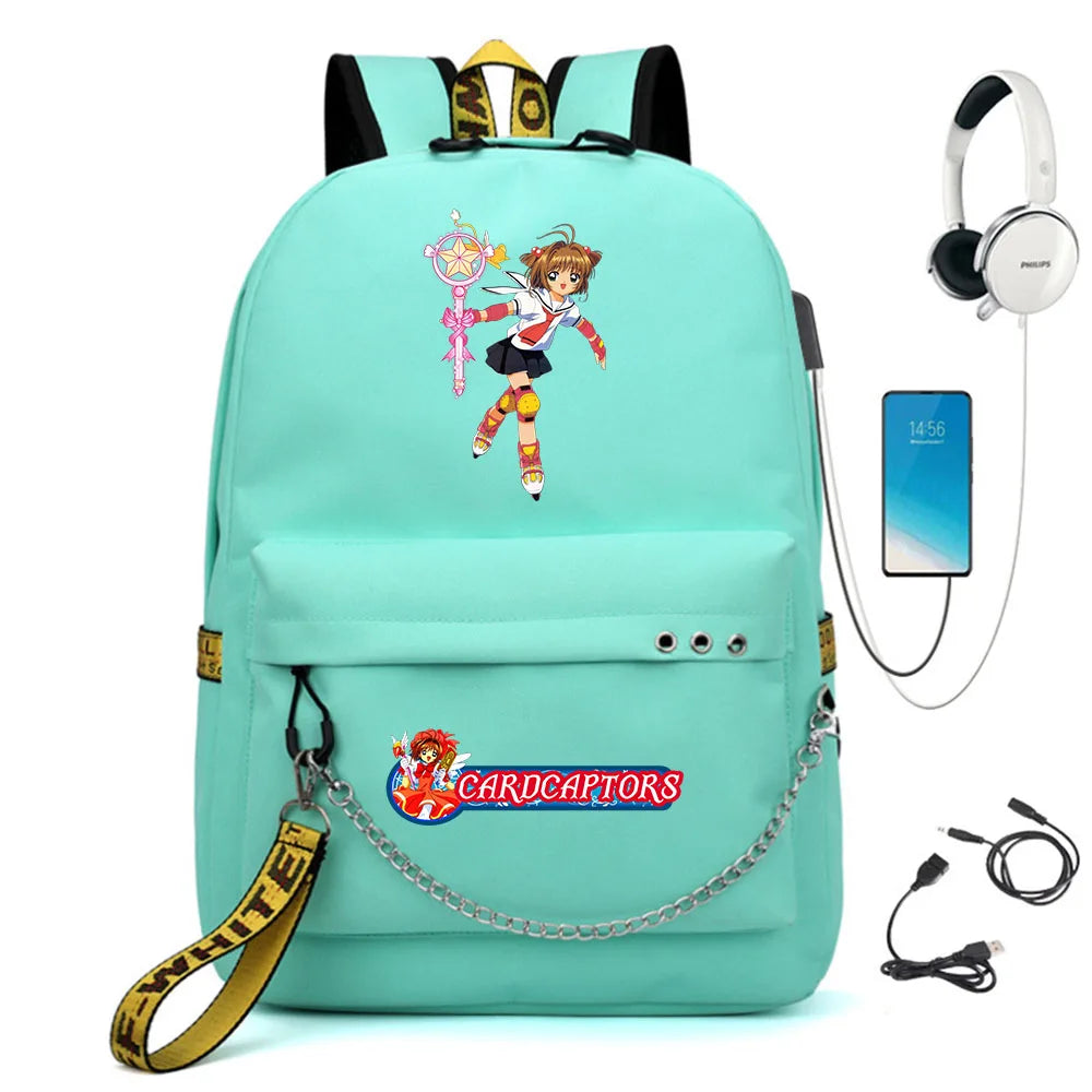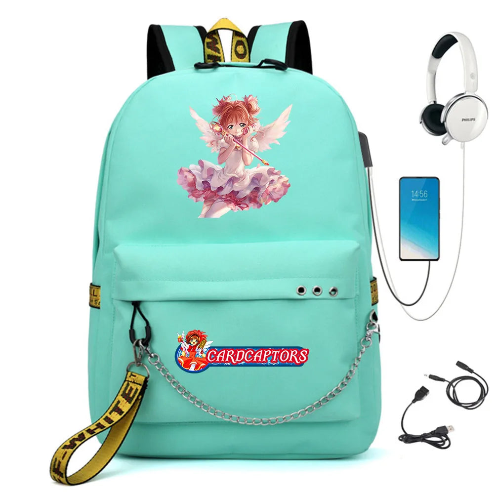 Cardcaptor Sakura Nylon Backpack Casual USB Charge Schoolbag Packsack Cartoon