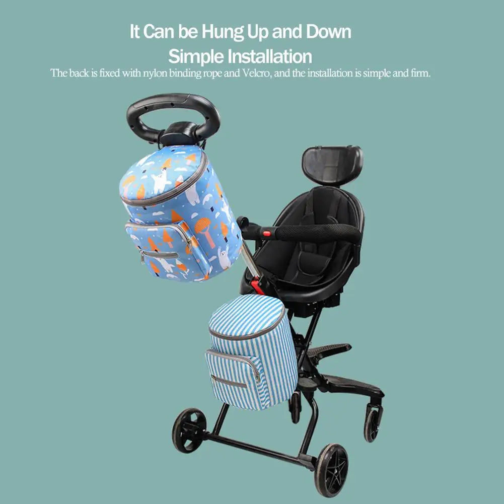 This adorable hanging bag is perfect for mums on-the-go. It offers a large capacity for storing diapers, nappies, and other essentials. Featuring a fun cartoon pattern, it adds a touch of charm to your stroller.
