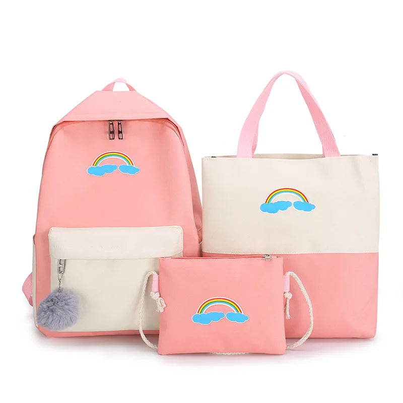 Cartoon Print Girls Backpack Set School Bags Kids Travel Backpack 4pcs