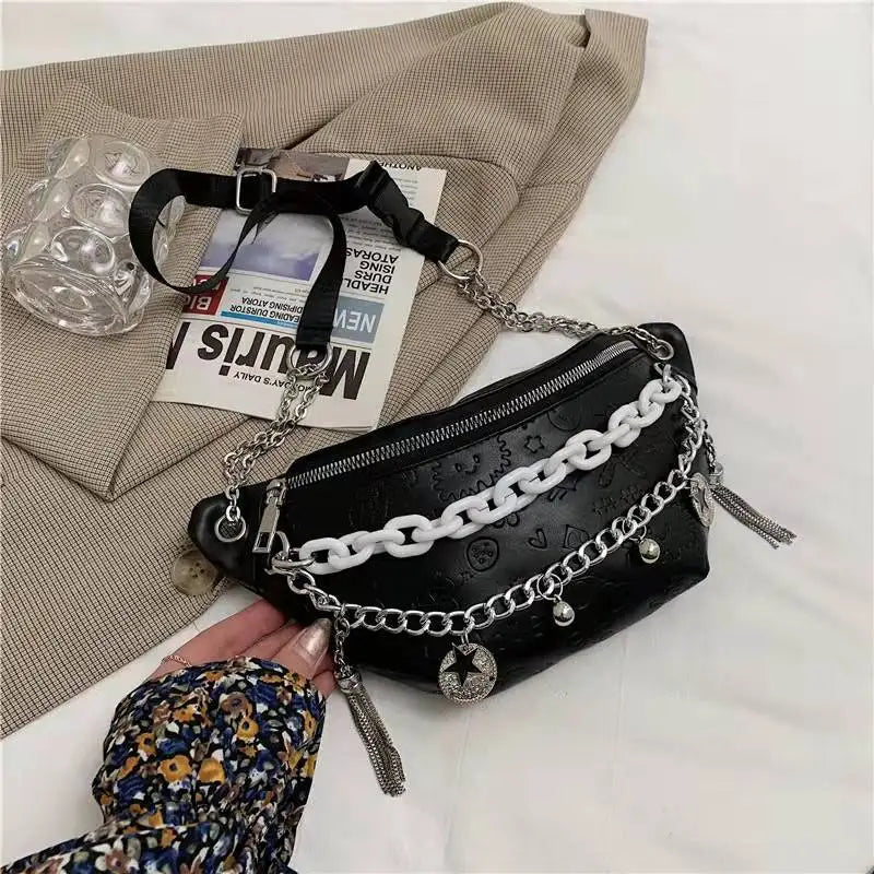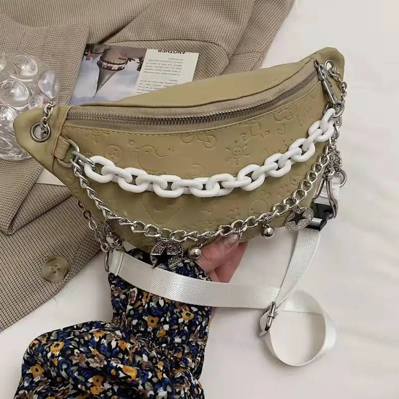Chain Waist Bag Solid Color Western Style Crossbody Bag for Women