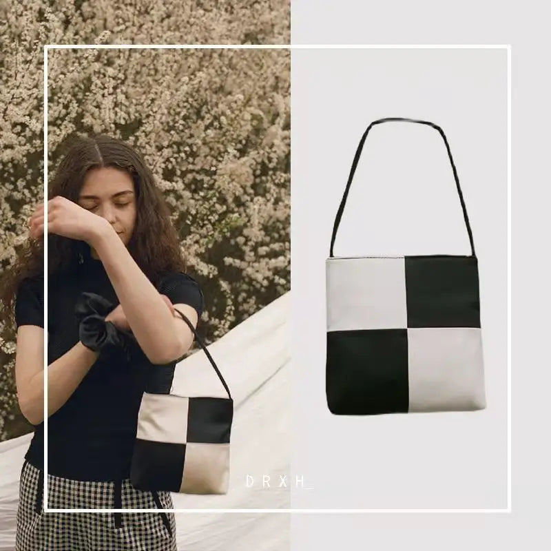 Checkerboard Silk Shoulder Bag Mini Square Handbag