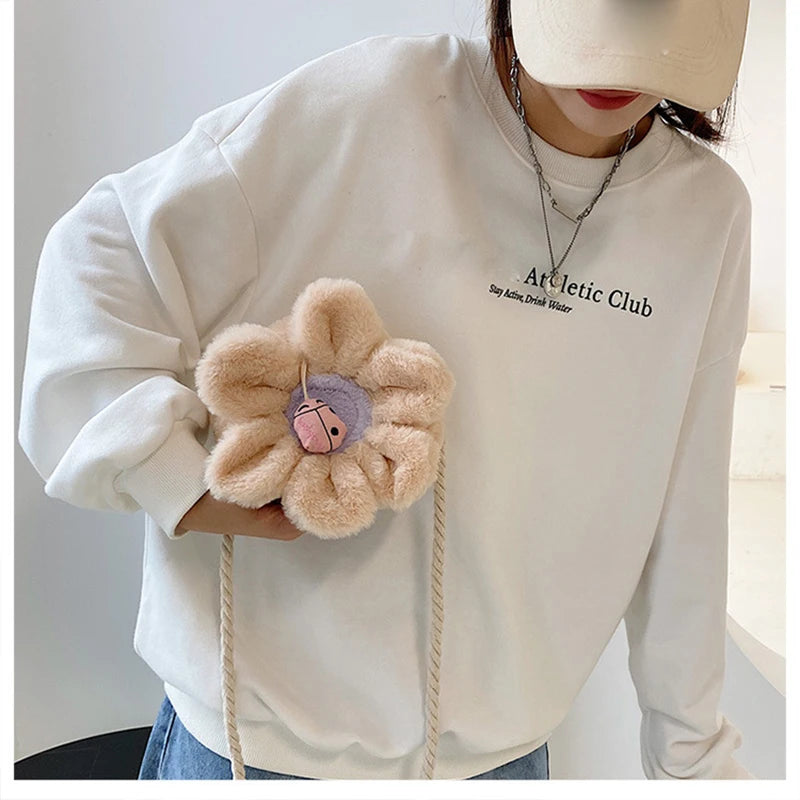 Child Purse Sun Flower Bag Crossbody Handbag Wool Cute Shoulder Bag Plush