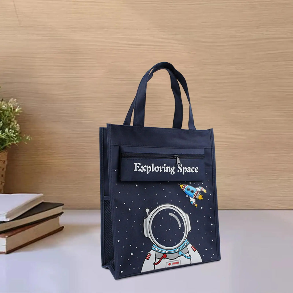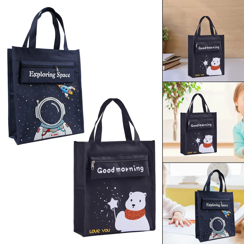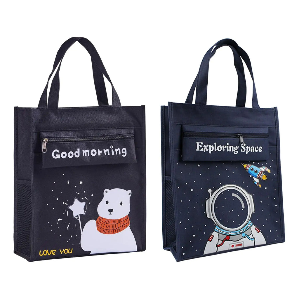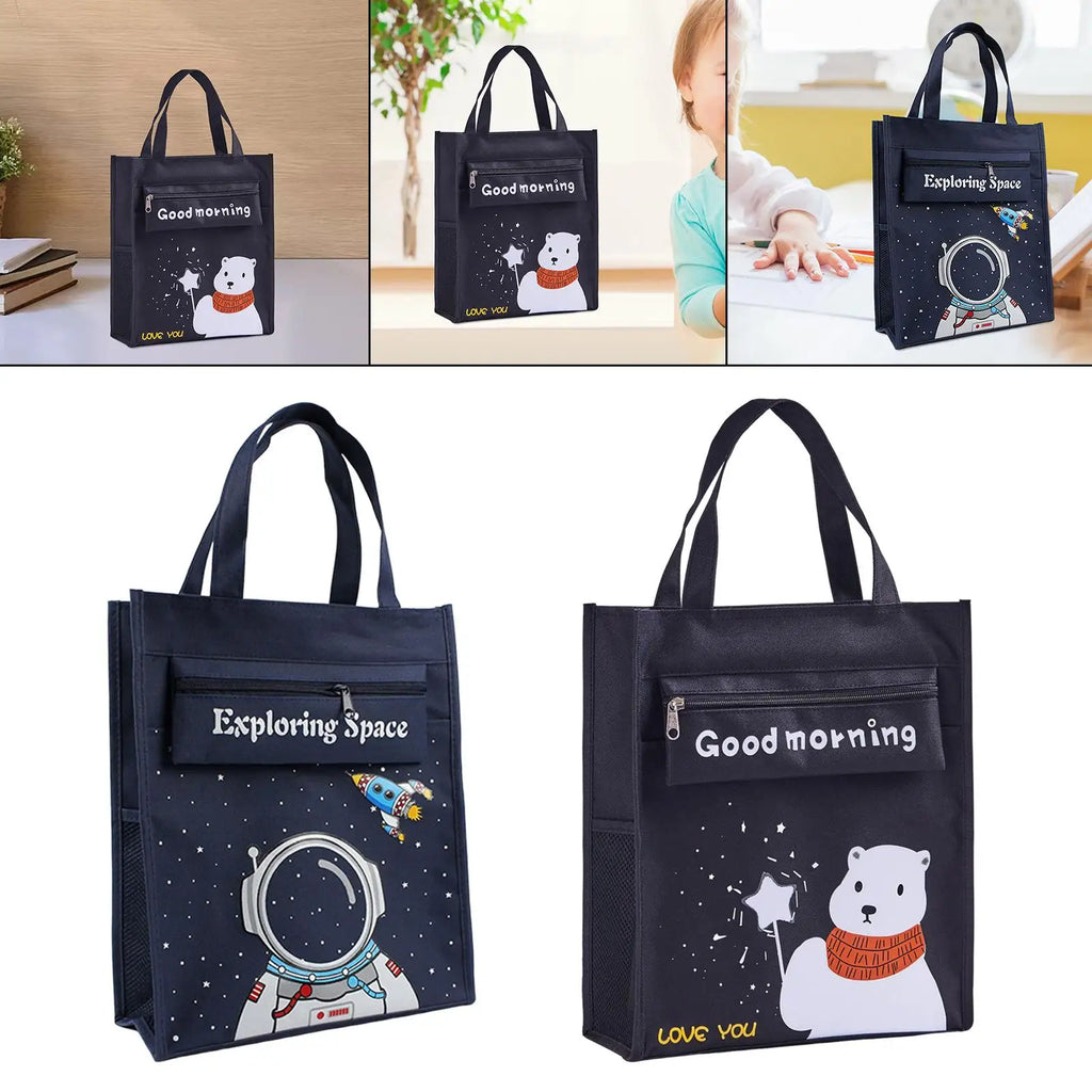 This kids tote bag is perfect for keeping children entertained on-the-go. The bag features a convenient mesh pocket for storing toys and activities.