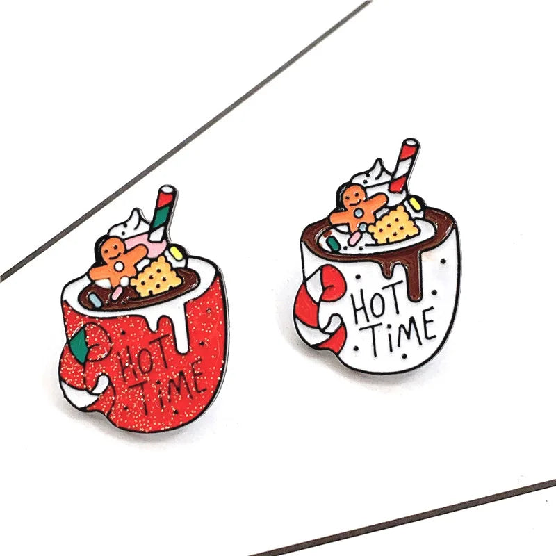 Add a festive touch to your outfit with these Christmas-themed brooches. They feature Santa Claus, Christmas tree, frog, and cup designs.