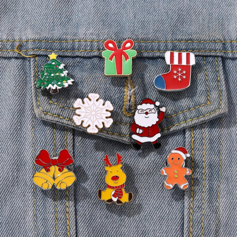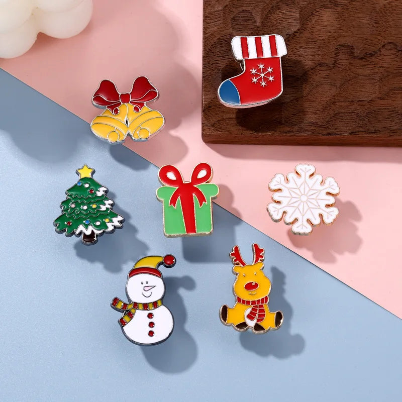 Add a festive touch to your outfit with this Christmas-themed brooch featuring Santa Claus, Christmas tree, frog, and cup designs. Perfect for adding a pop of holiday cheer to your clothing or accessories.