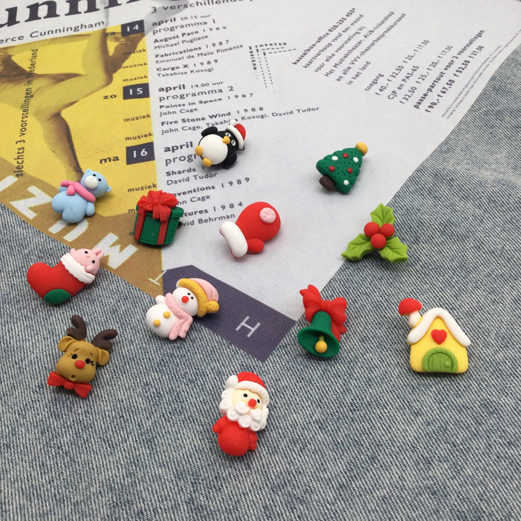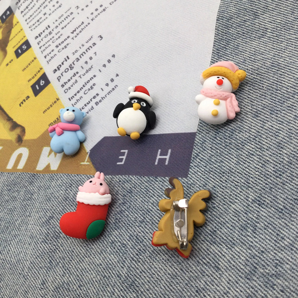 Add a festive touch with these adorable Christmas plastic pin brooches featuring snowman, Santa Claus, and glove designs. Perfect for clothes, bags, backpacks, and jewelry.