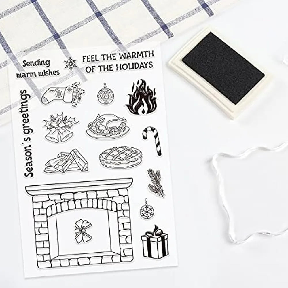 - Christmas fireplace cutting dies and silicone clear stamps set