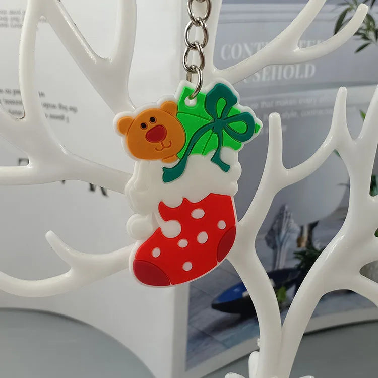 Christmas Keychain PVC Rubber Christmas Tree Santa Claus Elk Snowman Keyring