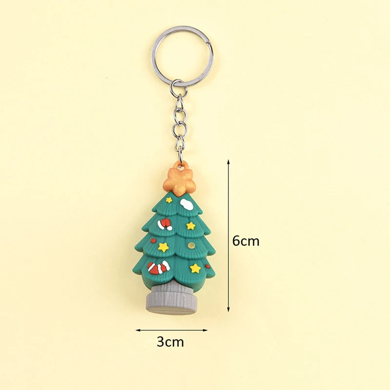 Get into the holiday spirit with this festive Christmas keychain featuring Santa Claus, Christmas tree, and elk. Perfect for backpacks or as a gift for children.