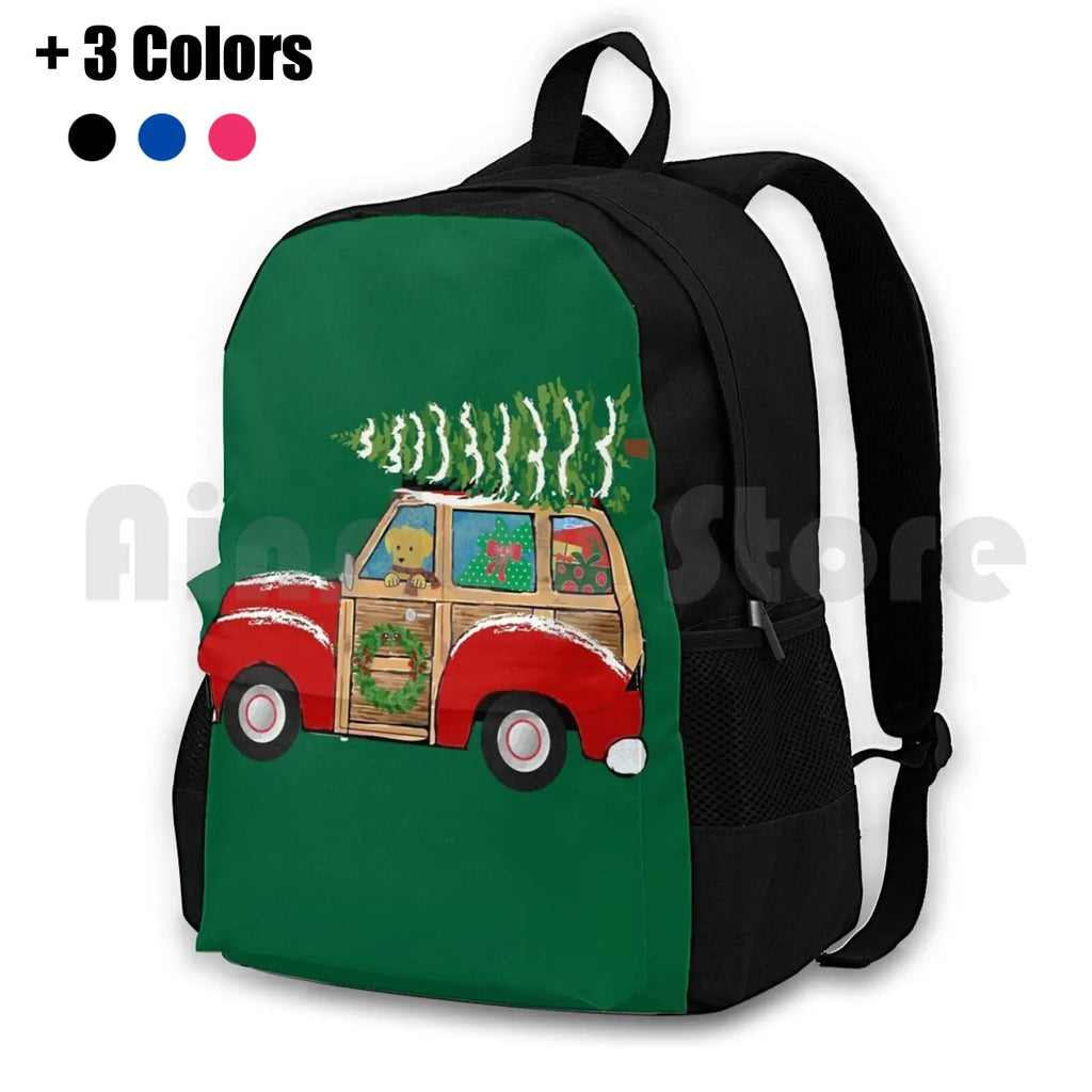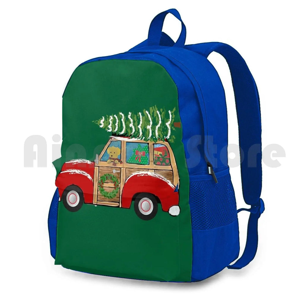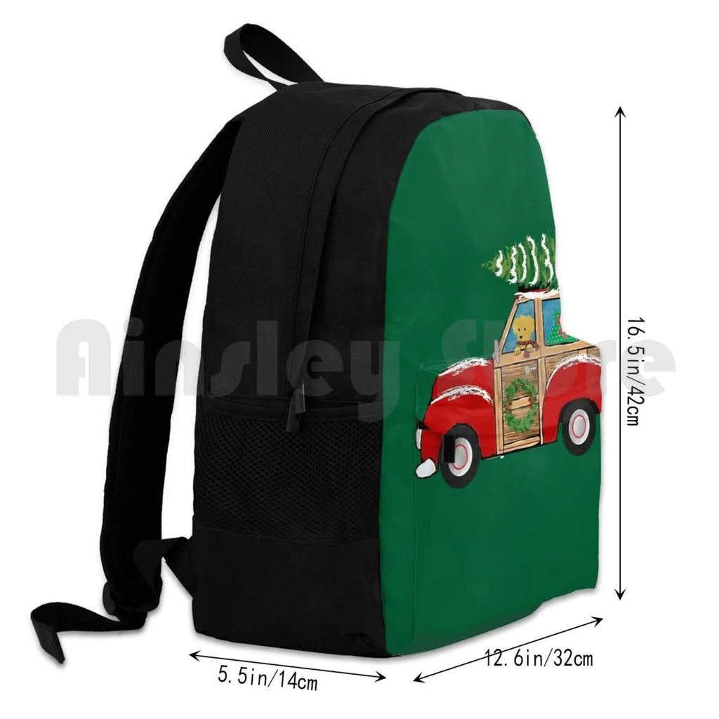 Get into the holiday spirit with this festive Christmas Woody Wagon backpack. Perfect for outdoor activities like hiking, camping, and traveling. Waterproof design ensures your items stay dry.