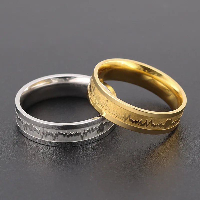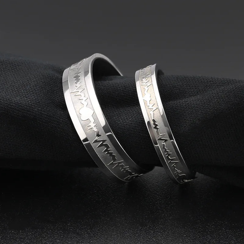 Classic Titanium Steel ECG Wave Heartbeat Ring Couple Wedding Rings Gift