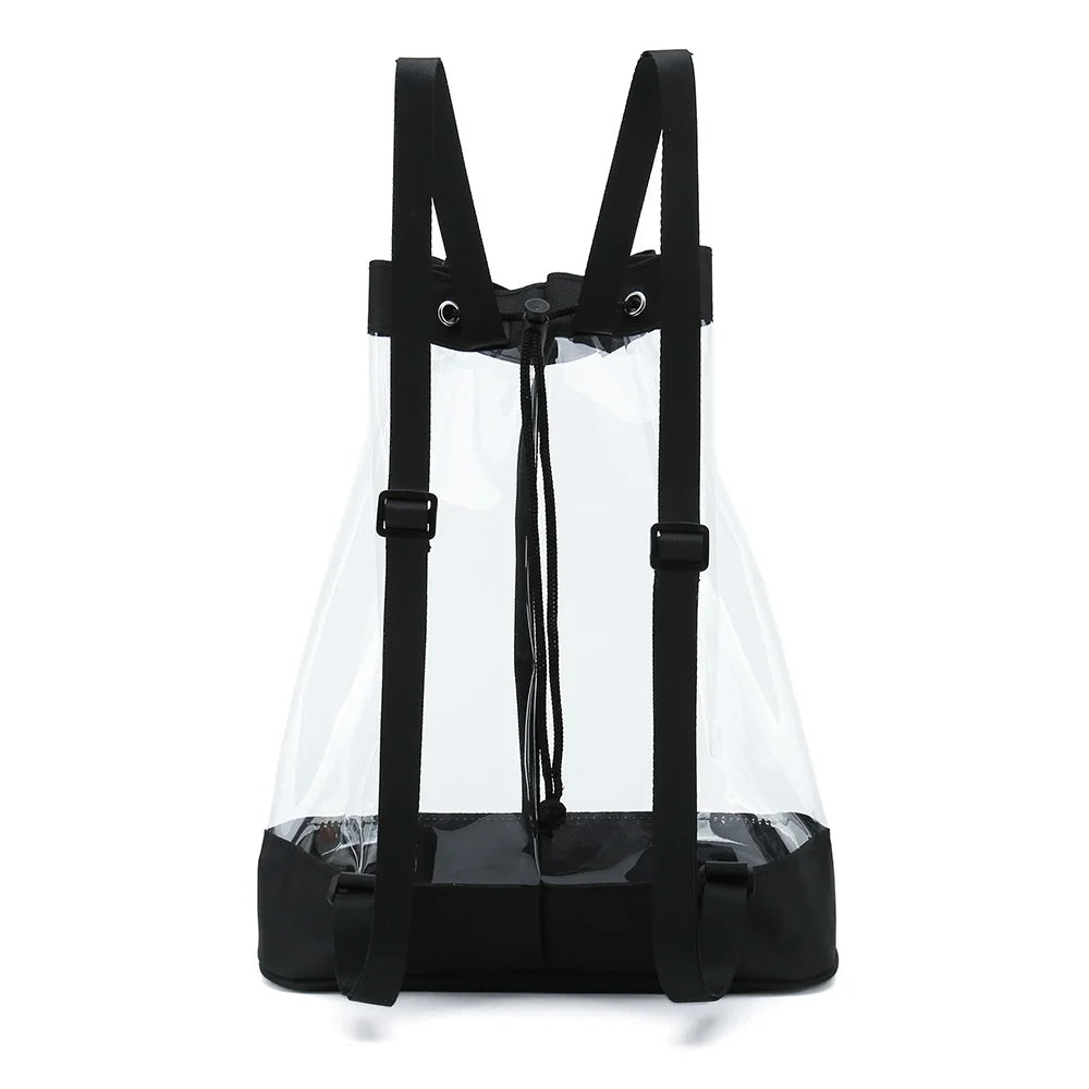 Stylish and convenient clear drawstring backpack for easy visibility of contents. Ideal for school, sports, and events.