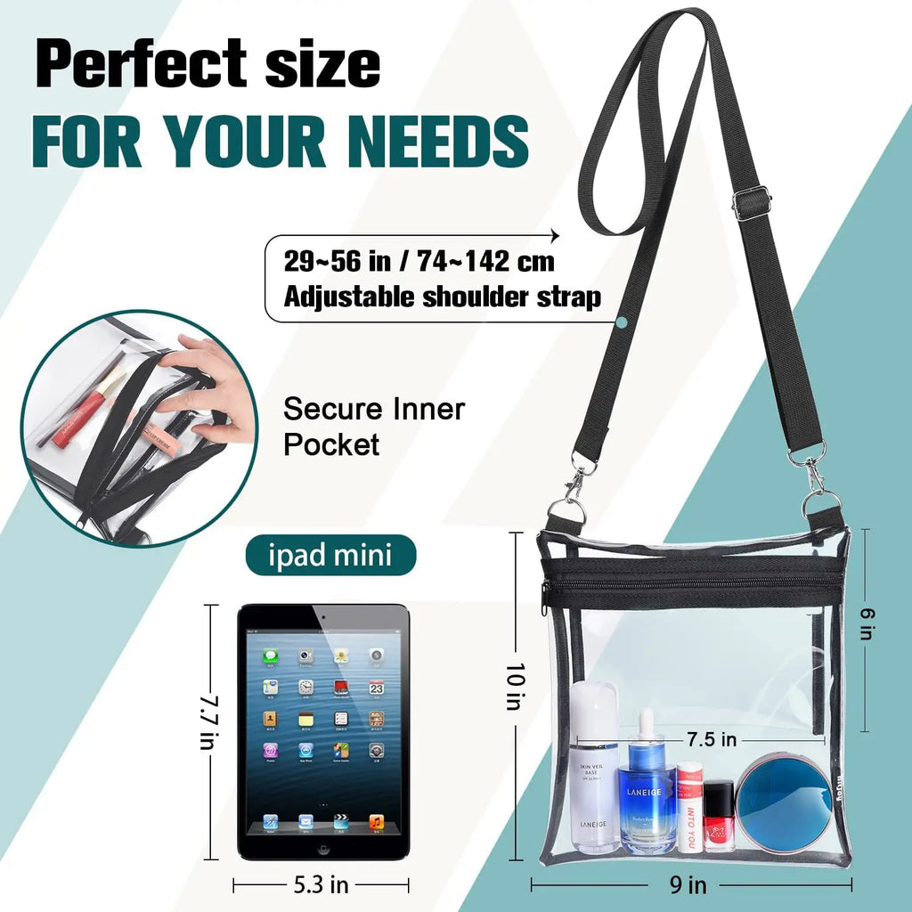 Stay stylish and compliant with this transparent crossbody sling purse made of waterproof clear PVC. Perfect for outdoor activities, gyms, and stadiums.