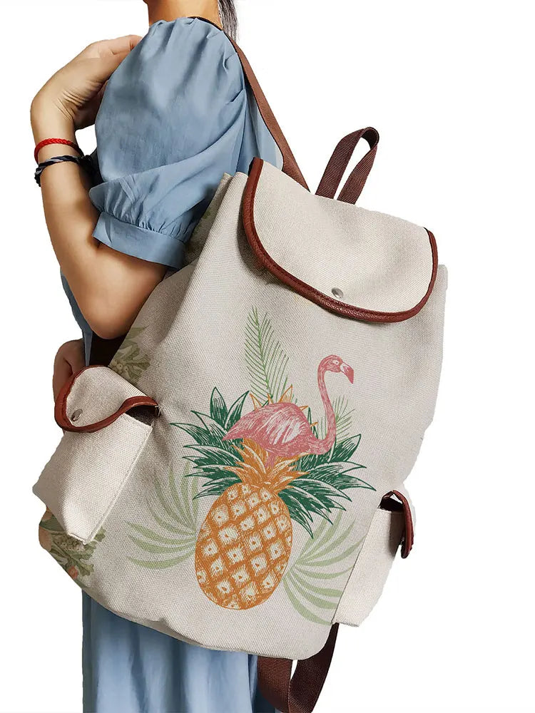Coconut Tree Flamingo Printed Drawstring Backpack Casual All-Match School Bag