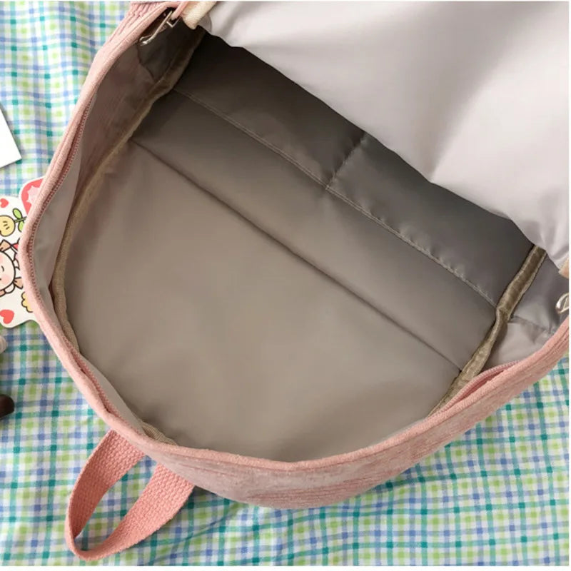 This corduroy backpack is perfect for teenage girls looking for a casual and stylish schoolbag. With its portable design, it's ideal for travel or daily use.