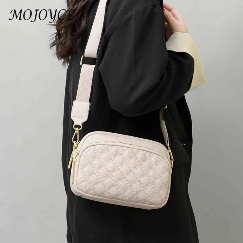 Stay organized and stylish with this multi-layer pocket cowhide leather camera shoulder bag. It features a wide strap, rhombus pattern, and solid design, making it a perfect satchel for women.