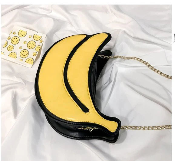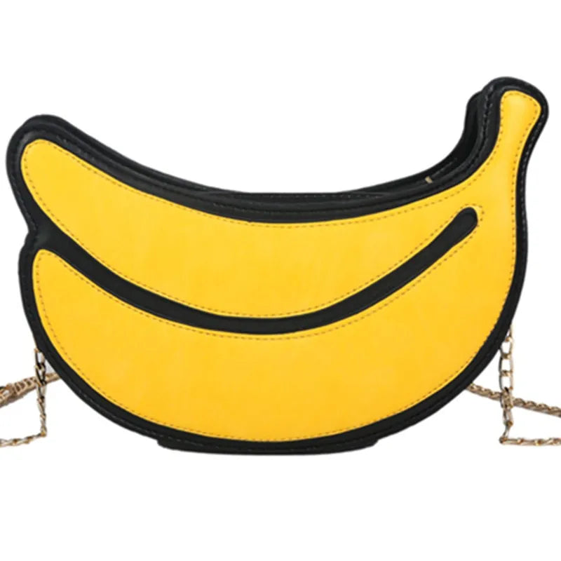 This adorable messenger bag is designed in a fun banana shape with PU leather material. It features a chain strap and is perfect for adding a quirky touch to your outfit.