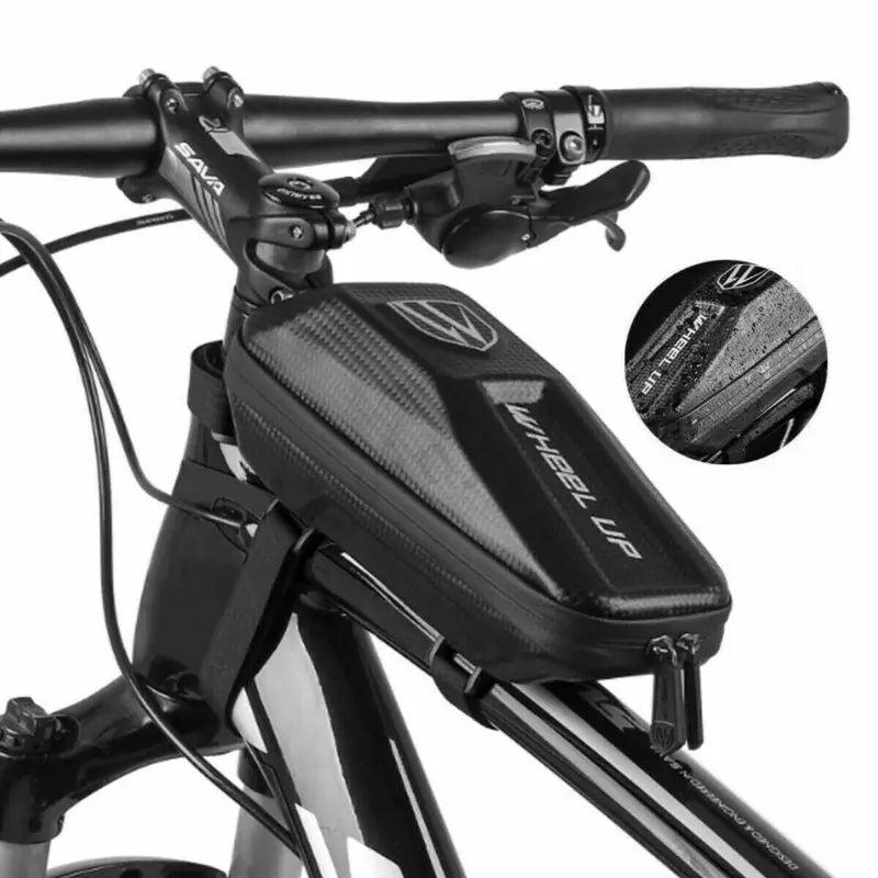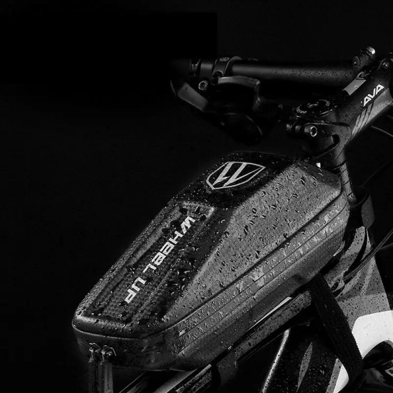 Convenient triangle bag for storing essentials while cycling. Easy to attach to the front frame of your bike. Durable and functional design.