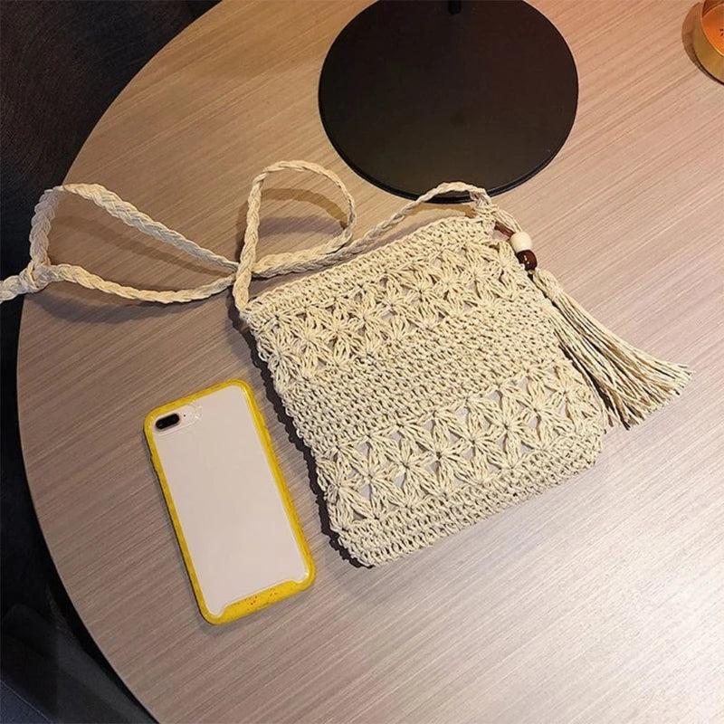 Get into a beachy mood with this stylish straw shoulder bag. Boho crochet design with tassel accent adds a trendy touch. Perfect for carrying essentials in style.