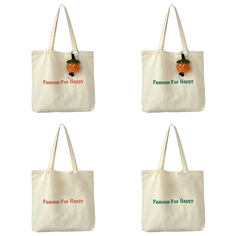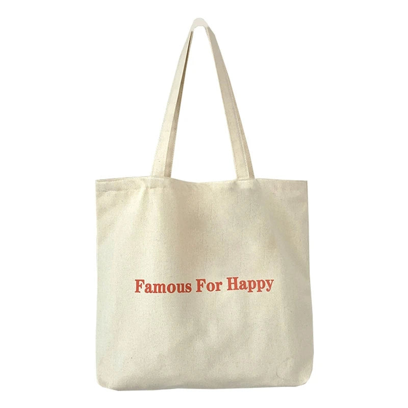 D0LF Canvas Tote Bag Zipper Pocket Shoulder Bags Work Grocery Shopping Letters